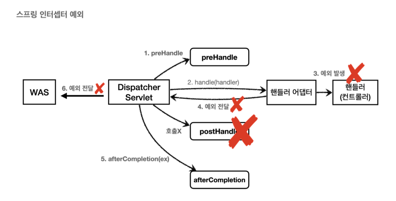 HTTP 요청 -> WAS -> 필터 -> 서블릿 -> 스프링 인터셉터(적절하지 않은 요청이라 판단, 컨트롤러 호출X) // 비로그인 사용자