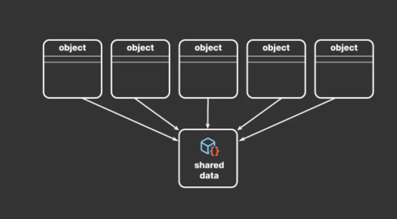 클래스의 인스턴스와 별도로 대량의 데이터를 저장하고 사용가능한 데이터 컨테이너 값의 사본이 생성되는 것을 방지 프로젝트의 메모리 사용을 줄일수 있다
