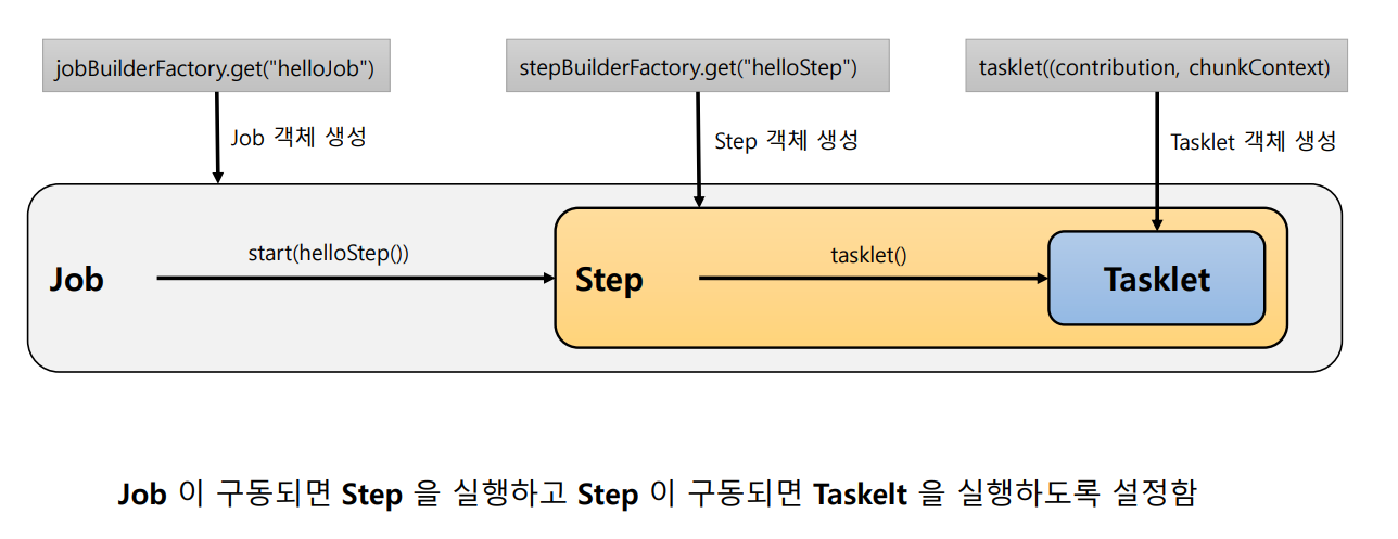 Job 구동 -> Step 을 실행 -> Taskelt 을 실행