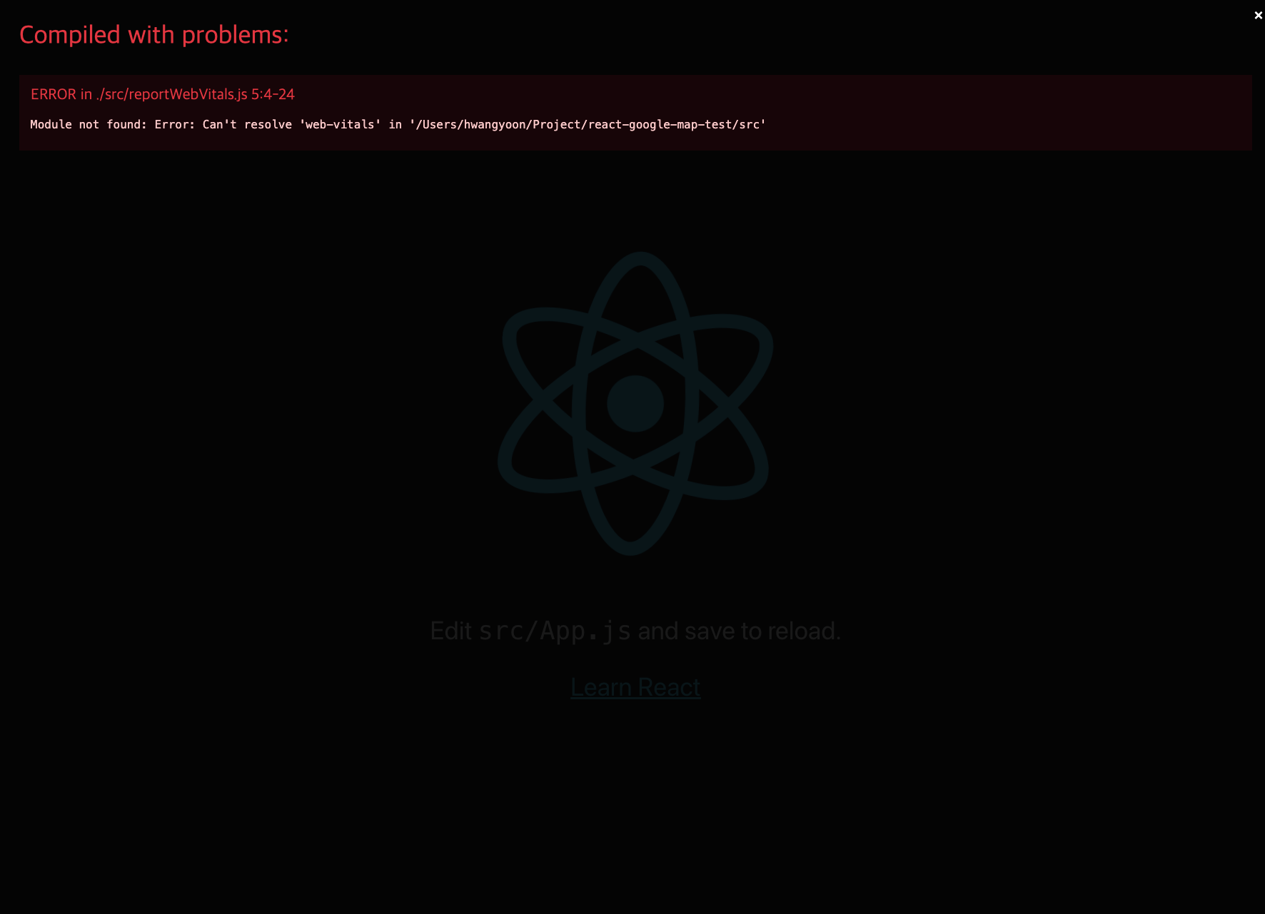 web-vitals 이 없다는 오류가 나서 npm i web-vitals 를 설치해준 뒤 다시 실행하니,