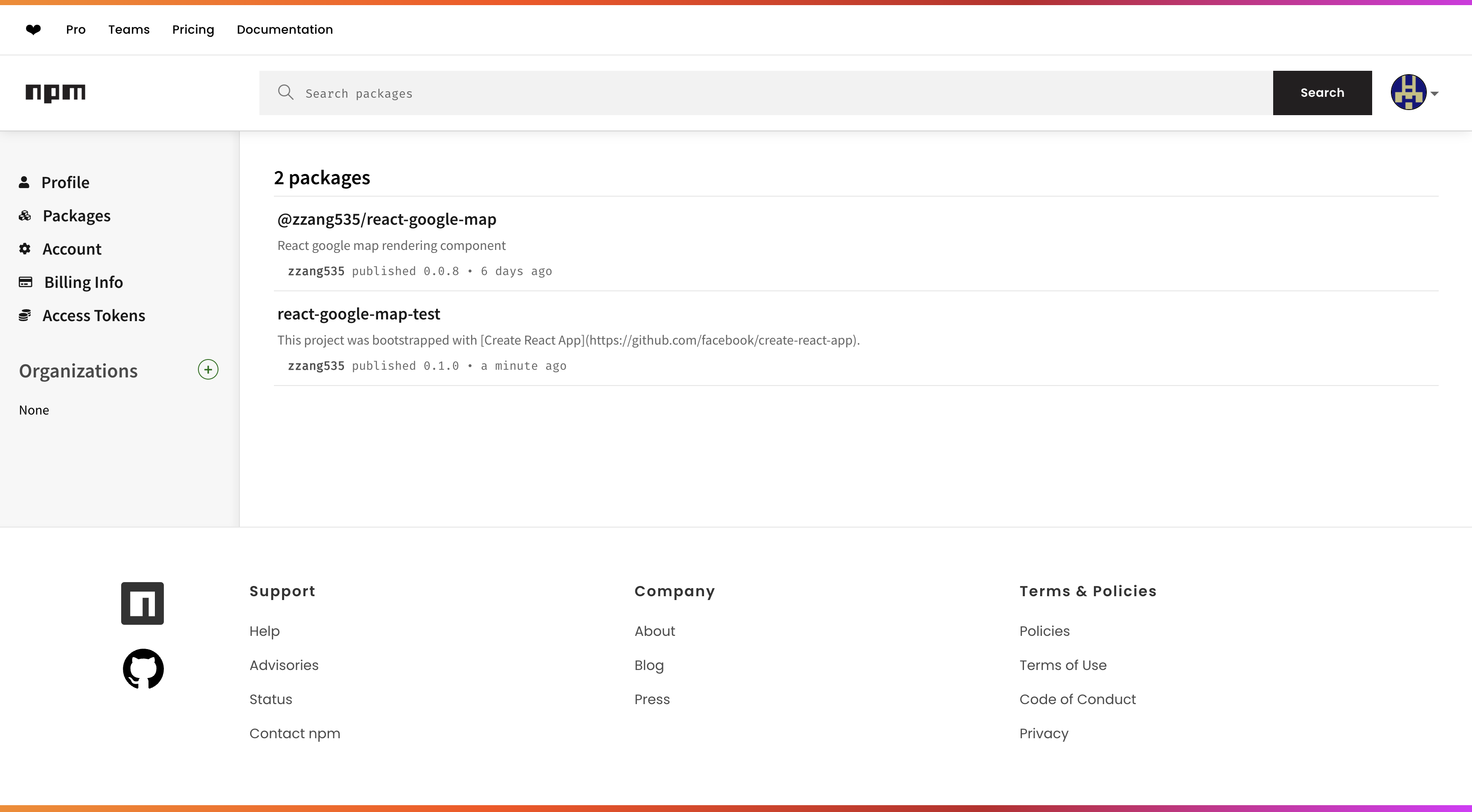 npm 에 배포가 된 것을 확인할 수 있습니다.