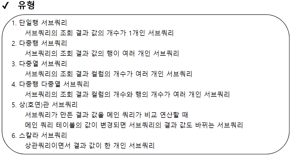 SUBQUERY 에 대해 학습하였다
