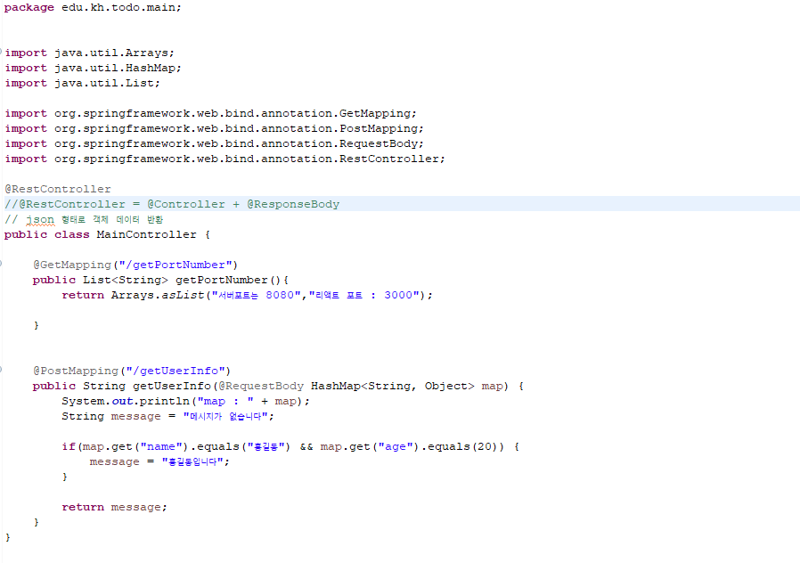 기본적인 방식은 js 와 다르지 않음. fetch 형태로 주소를 입력하여 요청을 보낸 다음 반환값을 json, text 등의 형태로 parsing 하여 사용. 코드에서는 반환값(res) 를 set으로 변수에 저장하여 출력하였다.
