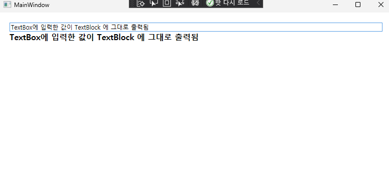 DisplayText = InputText; // TextBox의 값을 TextBlock에 반영