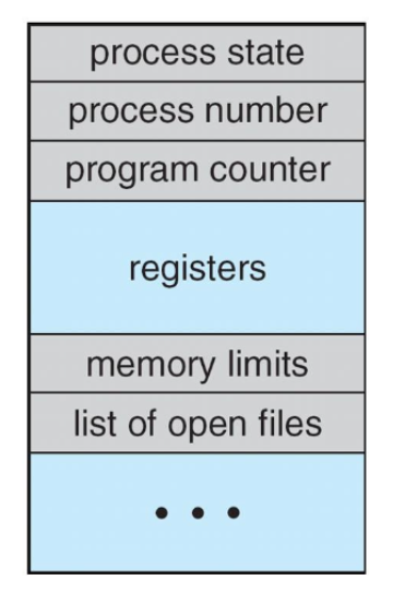 프로그램이 메모리에 적재되면, 운영 체제는 해당 프로그램을 관리하기 위해 프로세스 제어 블록(PCB)을 생성한다. PCB는 프로세스의 메타데이터를 포함하는 데이터 구조이며, 프로세스 생성시 만들어지고, 실행이 끝나면 없어진다. 즉, 프로세스가 실행을 중단하고 대기 상태로 전환될 때 나중에 해당 프로세스를 다시 실행하기 위한 정보를 PCB에 저장하는 것이다!