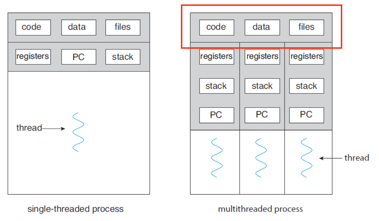 이러한 스레드의 구조는 멀티코어 프로세서 환경에서 특히 유용하다. 각 스레드는 서로 다른 코어에서 병렬적으로 실행될 수 있어, 전체적인 시스템의 성능을 향상시킬 수 있다. 또한 스레드들은 같은 프로세스 내의 자원을 공유하기 때문에, 스레드 간 통신이 프로세스 간 통신보다 훨씬 효율적이다.
