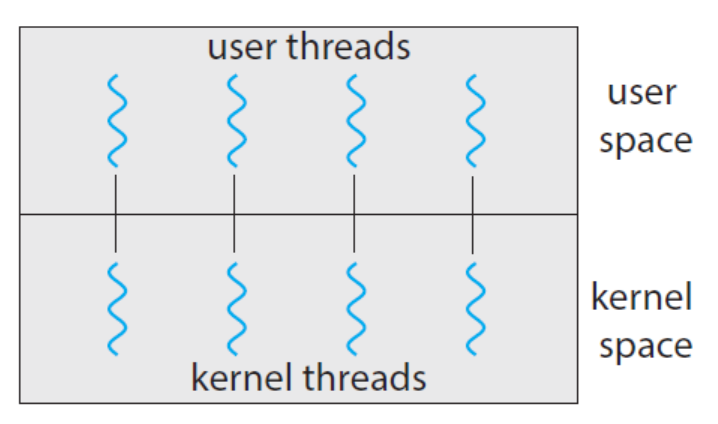 사용자 스레드와 커널 스레드는 어떤 연관 관계가 존재해야 한다. 그 이유는, 커널 수준 스레드가 실제로 CPU에서 실행되는 단위이기 때문이다. 사용자 수준 스레드가 실행되려면 반드시 커널 수준 스레드에 매핑되어야 한다. 이러한 매핑 관계는 다양한 모델(다대일, 일대일, 다대다)로 구현될 수 있다.