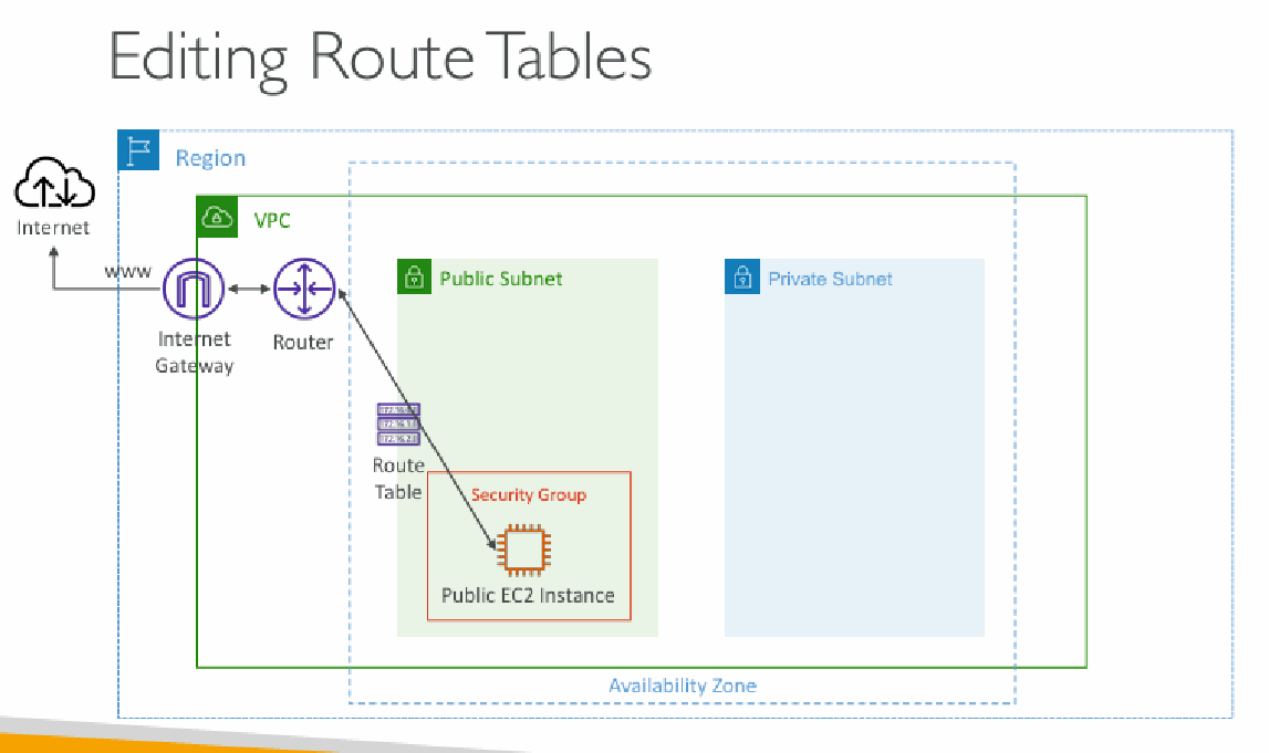 VPC 내에서 서브넷과 인터넷 게이트웨이, NAT 게이트웨이, VPC Peering 연결 등의 네트워크 트래픽 경로를 정의하는 구성 요소
