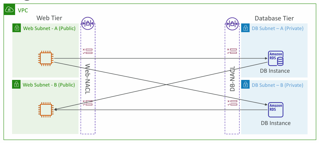 NACL의 클라이언트 서브넷에서는 3306 아웃바운드 요청을 허용하고, DB 서브넷에서는 3306 인바운드 요청을 허용한다.