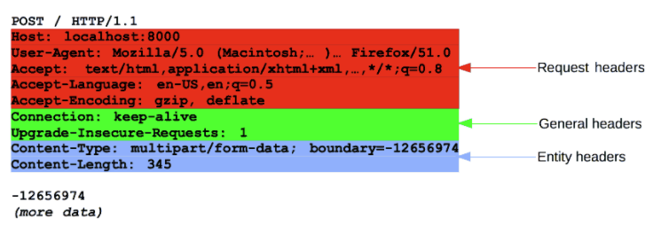 이 중 start line과 HTTP headers를 묶어 요청이나 응답의 헤드(head)라고 하고, payload는 body라고 이야기한다.