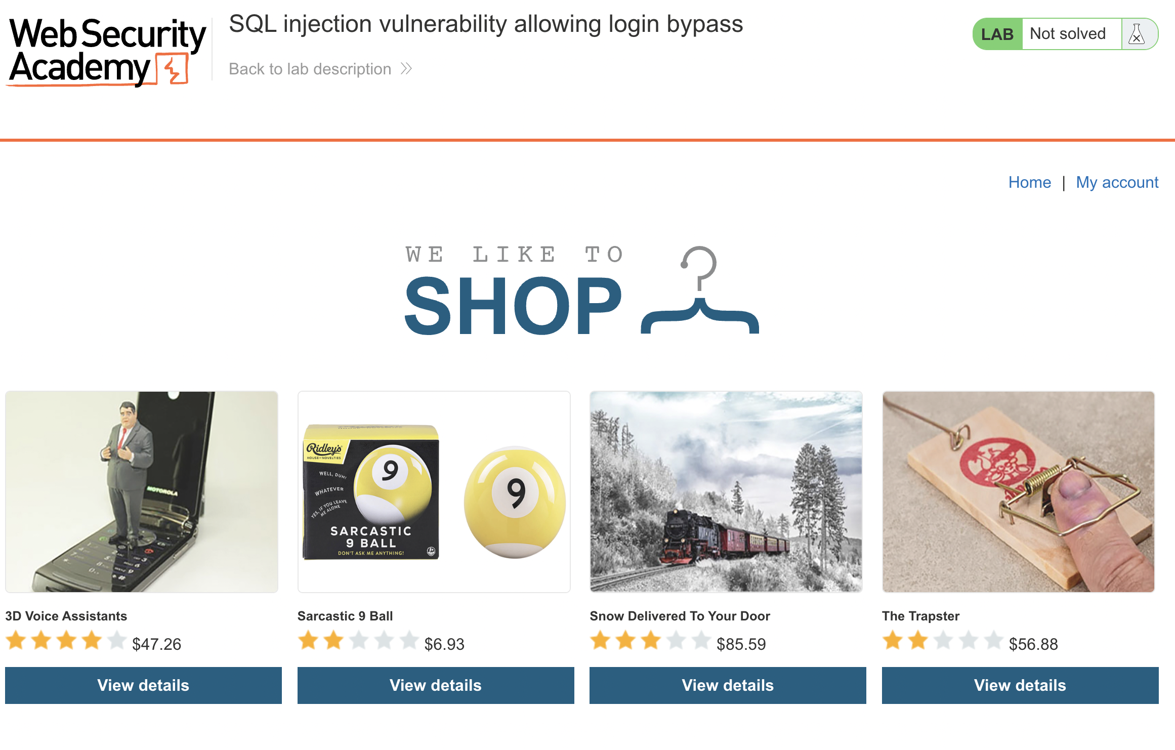 lab에 들어가면 가상 shop 사이트가 나온다.