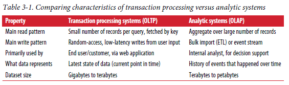 OLTP는 대개 사업 운영에 중요하기 때문에 높은 가용성과 낮은 지연 시간의 transaction process를 기대한다. 하지만 데이터베이스 관리자는 OLTP database에 ad hoc analytic query를 실행하는 것을 꺼려한다.