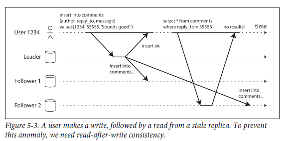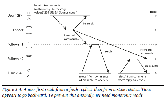 - asynchronous folloser가 뒤쳐져 있는 상태에서 data를 읽으면 inconsistency가 발생할 수도 있지만, database에 write를 멈추고 잠시 기다리면 follower는 leader를 따라잡게 된다 :