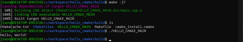 $ make -j7: CPU 코어 7개를 사용하여 프로젝트를 빌드한다.