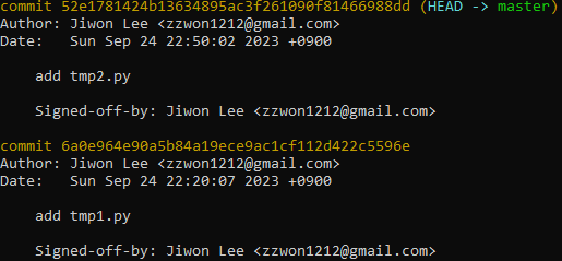 '의미 있는' 변경 내용을 커밋한다. git add .로 변경된 모든 파일을 한 번에 추가하여 이를 커밋할 수도 있지만, 이것보다는 '의미 있는' 변경을 공유하는 파일들만을 add하여 커밋해주는 것이 권장되는 방식이다. -s는 서명 추가이다. -m으로 커밋 "message"를 통해 변경 내용을 간결하게 설명하여 커밋의 목적과 내용을 나타내야 한다.