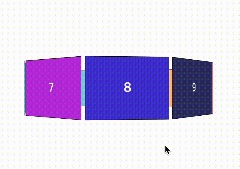 다음이 한쪽에 포개어 위치하기 때문에 정구각형 모양을 만들어 3D 느낌을 줄려고 한다. 정구각형 형태로 나타내기 위해서는 Y축에 40(360/9)만큼의 각도를 부여해주면 된다