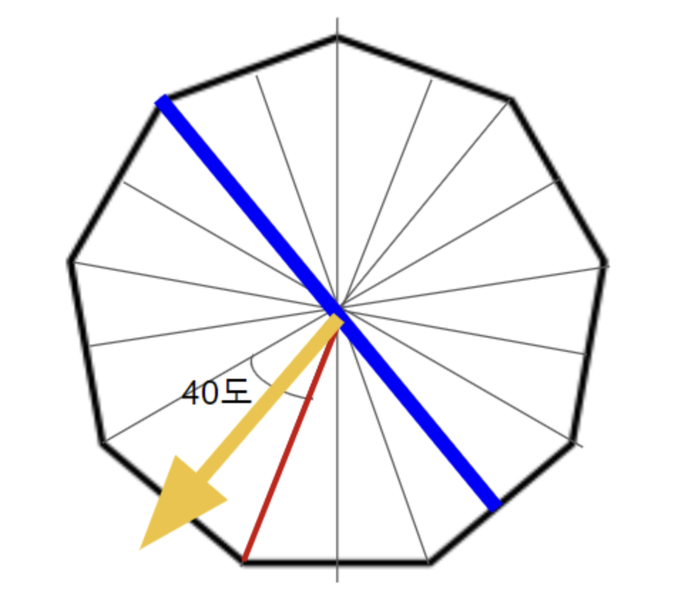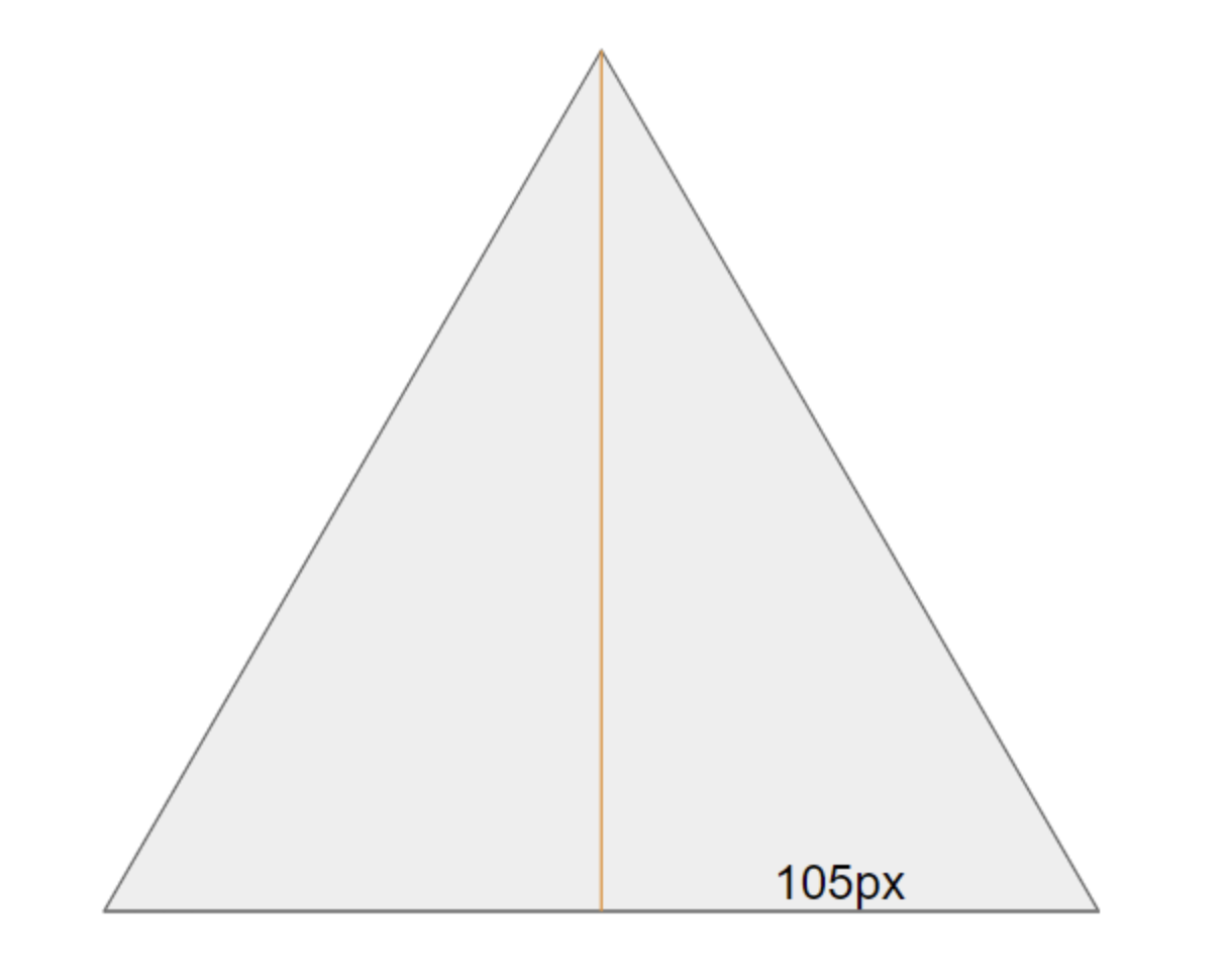 밑면의 길이가 210px이기 때문에, 반으로 나눈 105px임을 알 수 있다. 또, 삼각형의 각도는 40도 이지만, 반으로 나누면 20도가 되어 노란색 선분의 길이는 105/tan20인 288.485임을 알 수 있다